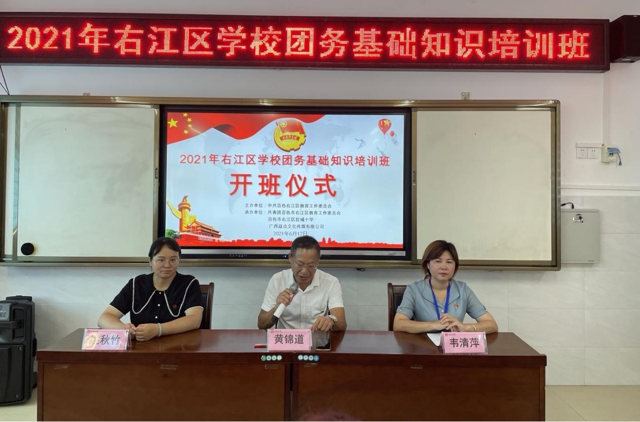????????為進(jìn)一步加強(qiáng)右江區(qū)學(xué)校團(tuán)干隊(duì)伍業(yè)務(wù)水平,增強(qiáng)履職盡責(zé)能力,全面提升新任團(tuán)干的業(yè)務(wù)理論、工作技能和創(chuàng)新能力,更好地開展共青團(tuán)工作,近日,百色市右江區(qū)教育局主辦,百色市右江區(qū)共青團(tuán)、廣西益眾文化傳媒有限公司、百色市拉域小學(xué)聯(lián)合承辦了2021年右江區(qū)學(xué)校團(tuán)務(wù)基礎(chǔ)知識培訓(xùn)班,來自右江區(qū)37所中小學(xué)、幼兒園的團(tuán)干參加本次培訓(xùn)。