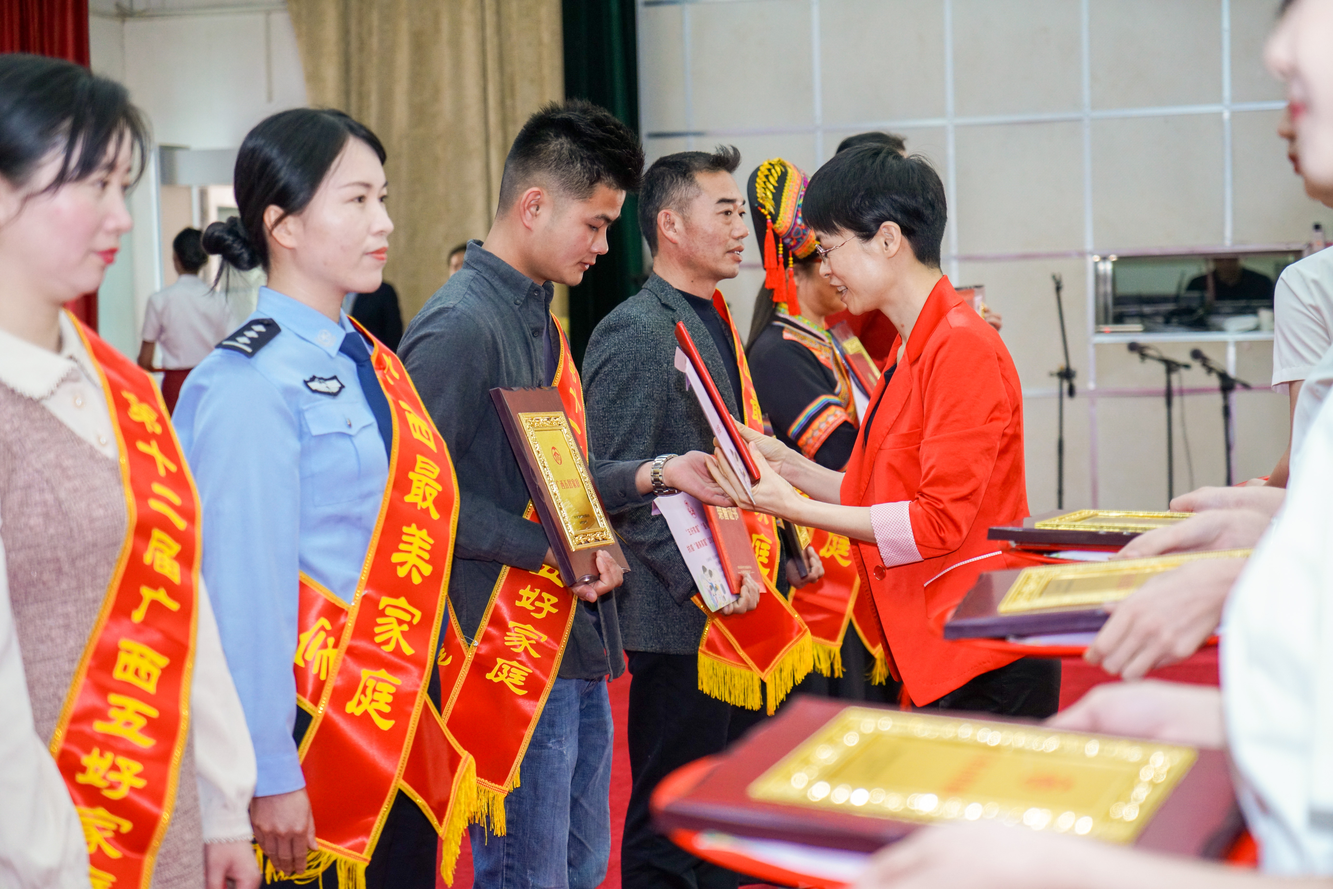 ????????為弘揚(yáng)中華民族家庭美德、樹立良好家風(fēng)、激勵(lì)抗疫精神,落實(shí)全國(guó)婦聯(lián)、自治區(qū)婦聯(lián)關(guān)于開展尋找“最美家庭”活動(dòng)精神。4月30日,由百色市婦聯(lián)、市文明辦、市總工會(huì)、市教育局聯(lián)合舉辦,廣西益眾文化傳媒有限公司承辦的2021年“傳承中華家訓(xùn)家風(fēng)?弘揚(yáng)百色起義精神”——“五好家庭”“最美家庭”和抗疫“最美家庭”禮遇活動(dòng)儀式在右江區(qū)禮堂舉行。來自2020年“五好家庭”“最美家庭”和抗疫“最美家庭”代表、“最美家庭”禮遇愛心單位代表以及百色市市直機(jī)關(guān)、企事業(yè)單位和社會(huì)各界代表等共計(jì)200多人參加活動(dòng)。