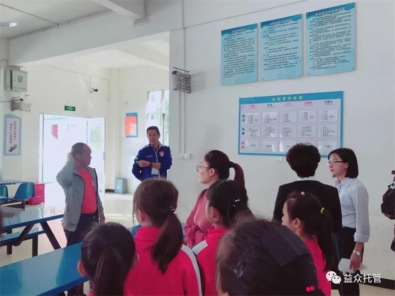 益眾托管公司校區(qū)負責(zé)人介紹菜譜公示欄,
