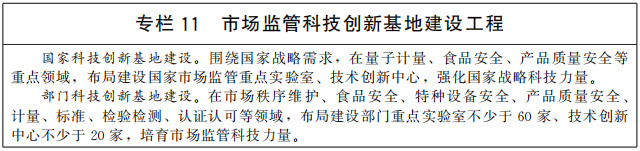 加強(qiáng)科技支撐體系建設(shè)。鼓勵市場監(jiān)管領(lǐng)域科研創(chuàng)新,加強(qiáng)市場監(jiān)管重點領(lǐng)域關(guān)鍵技術(shù)攻關(guān)和先進(jìn)裝備研制,布局一批國家和部門科技創(chuàng)新基地。重點推進(jìn)中國標(biāo)準(zhǔn)化研究院國家標(biāo)準(zhǔn)館建設(shè)工程和昌平實驗基地二期建設(shè)工程、中國計量科學(xué)研究院實驗基地二期建設(shè)工程、國家食品質(zhì)量安全檢(監(jiān))測能力建設(shè)工程、國家消費品質(zhì)量安全風(fēng)險監(jiān)測預(yù)警能力建設(shè)工程等建設(shè),全面提升市場監(jiān)管科技支撐能力。