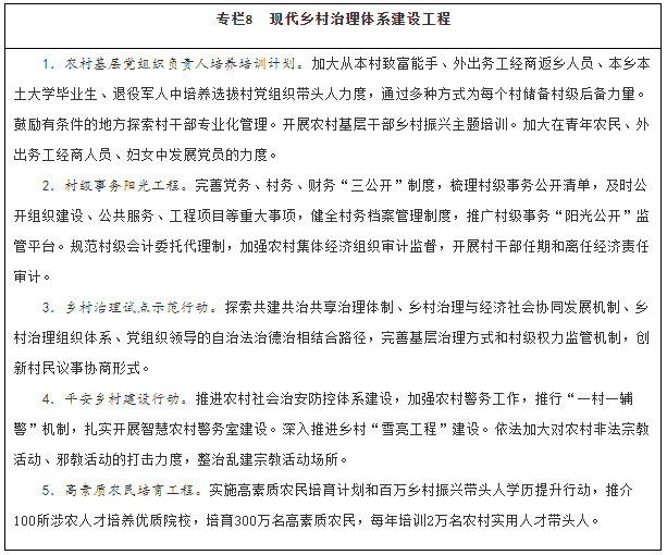 提升鄉(xiāng)村治理效能。嚴格依法設定縣級對鄉(xiāng)鎮(zhèn)賦權賦能范圍,整合鄉(xiāng)鎮(zhèn)和縣級部門派駐鄉(xiāng)鎮(zhèn)機構承擔的職能相近、職責交叉工作事項,健全鄉(xiāng)鎮(zhèn)和縣級部門聯(lián)動機制,壓實鄉(xiāng)鎮(zhèn)政府綜合治理、安全生產等方面的責任。規(guī)范村級組織工作事務,減輕村級組織負擔。健全鄉(xiāng)村治理工作協(xié)同運行機制,深入開展鄉(xiāng)村治理體系建設試點示范和鄉(xiāng)村治理示范村鎮(zhèn)創(chuàng)建,推廣運用“積分制”“清單制”等形式。建設法治鄉(xiāng)村,創(chuàng)建民主法治示范村,培育農村學法用法示范戶。