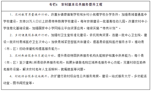 提升村級綜合服務能力。加強村級綜合服務設施建設,完善便民服務設施。制定村級公共服務目錄和代辦政務服務指導目錄,提供就業(yè)社保、社會救助、衛(wèi)生健康、法律咨詢等公共服務。發(fā)展農村普惠性托幼服務,健全農村留守兒童、婦女、老年人、殘疾人以及困境兒童關愛服務體系。加快推動鄉(xiāng)鎮(zhèn)社會工作服務站建設,吸引社會工作人才提供專業(yè)服務。加強農村公益性殯葬設施建設。