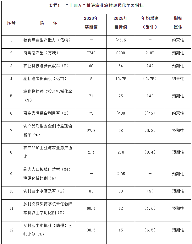 “十四五”推進農業(yè)農村現(xiàn)代化規(guī)劃