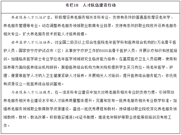 拓寬人才培養(yǎng)途徑。優(yōu)化養(yǎng)老服務(wù)專(zhuān)業(yè)設(shè)置,結(jié)合行業(yè)發(fā)展新業(yè)態(tài),動(dòng)態(tài)調(diào)整增設(shè)相關(guān)專(zhuān)業(yè)并完善教學(xué)標(biāo)準(zhǔn)體系,引導(dǎo)普通高校、職業(yè)院校、開(kāi)放大學(xué)、成人高校等加大養(yǎng)老服務(wù)人才培養(yǎng)力度。積極穩(wěn)妥推進(jìn)1+X證書(shū)(“學(xué)歷證書(shū)+若干職業(yè)技能等級(jí)證書(shū)”)制度。大力推進(jìn)養(yǎng)老領(lǐng)域產(chǎn)教融合,培育一批產(chǎn)教融合型養(yǎng)老企業(yè),支持院校和優(yōu)質(zhì)機(jī)構(gòu)共建合辦養(yǎng)老服務(wù)實(shí)訓(xùn)基地,探索將有條件的養(yǎng)老機(jī)構(gòu)發(fā)展成實(shí)習(xí)實(shí)訓(xùn)點(diǎn)。大力發(fā)展老年學(xué)、養(yǎng)老服務(wù)管理、健康服務(wù)與管理、中醫(yī)養(yǎng)生學(xué)相關(guān)專(zhuān)業(yè)本科教育。引導(dǎo)有條件的高校開(kāi)設(shè)老年學(xué)、老年醫(yī)學(xué)、老年護(hù)理學(xué)、老年心理學(xué)、老年社會(huì)學(xué)、老年?duì)I養(yǎng)學(xué)、老年服務(wù)與管理、老年社會(huì)工作等課程,鼓勵(lì)高校自主培養(yǎng)積極應(yīng)對(duì)人口老齡化相關(guān)領(lǐng)域的高水平人才,加大新技術(shù)新應(yīng)用新業(yè)態(tài)的引才用人力度,為智慧健康養(yǎng)老、老齡科研、適老化產(chǎn)品研發(fā)制造等領(lǐng)域培養(yǎng)引進(jìn)和儲(chǔ)備專(zhuān)業(yè)人才。落實(shí)醫(yī)師區(qū)域注冊(cè)制度,鼓勵(lì)醫(yī)務(wù)人員到醫(yī)養(yǎng)結(jié)合機(jī)構(gòu)(同時(shí)具備醫(yī)療衛(wèi)生資質(zhì)和養(yǎng)老服務(wù)能力的醫(yī)療衛(wèi)生機(jī)構(gòu)或養(yǎng)老機(jī)構(gòu))執(zhí)業(yè)。在養(yǎng)老機(jī)構(gòu)舉辦的醫(yī)療機(jī)構(gòu)中工作的醫(yī)務(wù)人員,可參照?qǐng)?zhí)行基層醫(yī)務(wù)人員相關(guān)激勵(lì)政策。